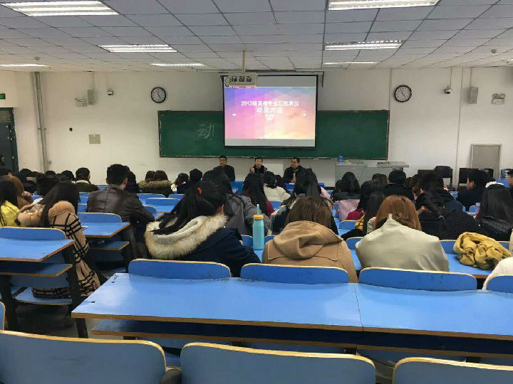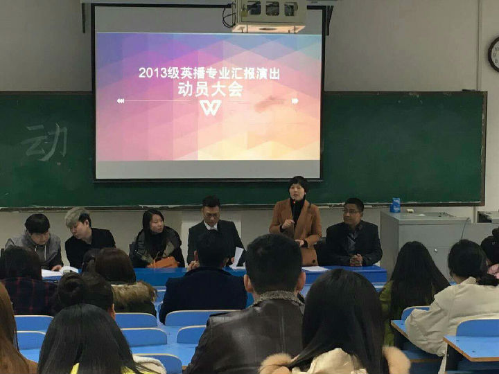 为提高学生的专业水平,展示专业能力,决定举办2013级播音与主持艺术专业(英文方向)专业汇报演出,这是该专业学生在校期间参加的一项大型第二课堂活动。3月10日下午,汇报演出动员大会在图书馆L501举行,我院院长林萍教授、党总支副书记田占范以及本次汇报演出的指导老师薛天桥、韦士心、娄艳阁、范晓光、刘飞曼、李沅擎、周建参加了本次动员会,动员大会由薛天桥老师主持。