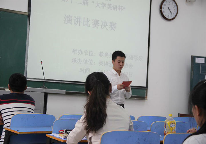 5月19日下午两点钟,william威廉中文第十二届“大学英语杯”演讲比赛决赛在图书馆多媒体教室303拉开了序幕。本次演讲比赛由威廉williamhill播音主持艺术专业(英文方向)学生主持,大学生英语爱好者协会协助开展赛事工作。