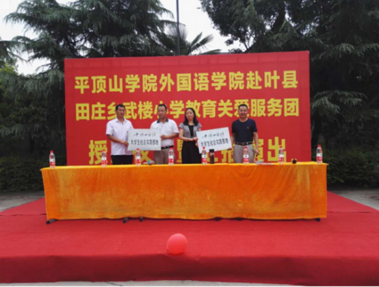 7月20日,我校威廉williamhill暑期“三下乡”社会实践基地授牌仪式暨汇报演出在叶县田庄乡武楼小学举行。校团委书记赵伟杰、威廉williamhill党总支书记单满菊、副书记田占范、团总支书记薛天桥、武楼村第一书记苏亚奇、村支部书记郭现甫、武楼小学校长王万中、威廉williamhill赴叶县教育关爱团的全体志愿者以及武楼小学的学生和家长们参加了此次活动。