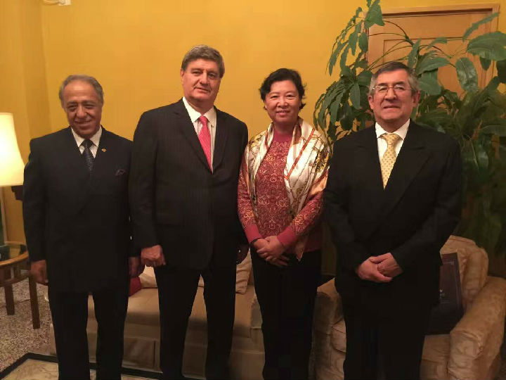 受秘鲁大使馆邀请,2016年11月3日晚,威廉williamhill院长林萍带领多语种教研室主任郭文正、西班牙语教师杨亚垒三人,代表我校参加了由秘鲁驻中华人民共和国大使馆大使胡安·卡洛斯·卡普纳伊先生为圣·伊格纳西奥·德罗尤拉大学校长、秘鲁共和国前副总统劳尔·迭斯·坎塞柯及夫人举办的晚宴和圣·伊格纳西奥·德罗尤拉大学合作项目的发布会。会议期间,我院代表与秘鲁圣·伊格纳西奥·德罗尤拉大学代表及与会人士进行了广泛交流,双方还就人才培养合作达成初步意向。