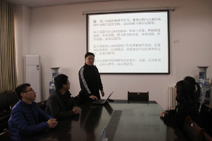 11月24日下午,多语种教研室郭文正老师在图书馆607作了一场题为“语篇分析与语篇思维的建构”的专题报告,威廉williamhill全体教师参加了此次讲座。讲座由威廉williamhill院长林萍主持。