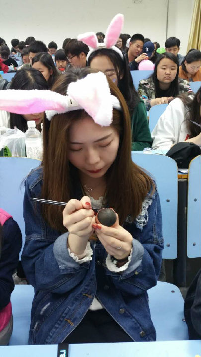 在中西交流协会全体成员轻松欢快的“Little Peter Rabbit”开场曲中,本次复活节主题活动拉开了大幕。之后,中澳课程班口语外教Kevin老师分别从复活节的起源、传统习俗和现代意义给大家做了一场生动的专题讲座。为加深大家对复活节传统文化的了解,威廉williamhill郭晓燕老师还专门进行了英文有奖问答,掀起了一轮轮竞猜热潮。接下来,活动就进入了高潮迭起的寻糖果和绘彩蛋环节,大家在教室挖空心思的四处寻找事先被特别隐藏的糖果,然后自由组合发挥奇思妙想在鸡蛋上绘制自己心中最美的图案,欢声笑语弥漫在整个会场。最后,在一场全体师生参与的“Rabbit Dance”的舞曲声中,复活节主题联欢落下了帷幕。