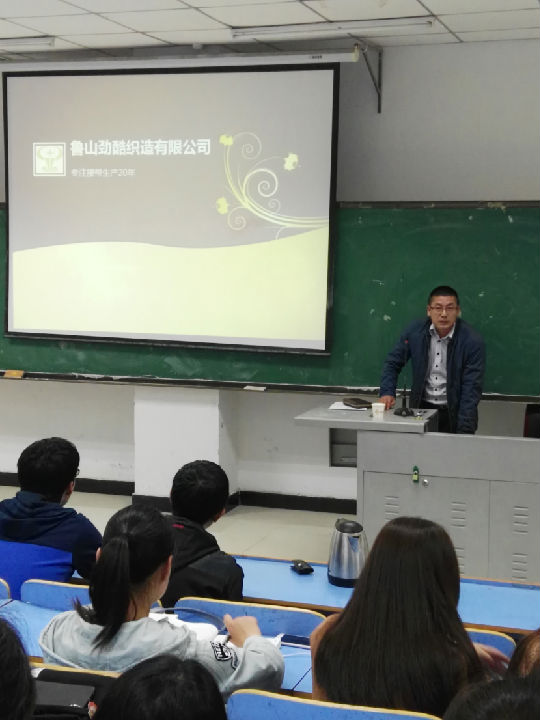 2017年4月25日下午四点至六点,我院校企合作企业,河南劲酷织造有限公司电子商务运营中心总监李鹏举应邀为我院13,14,15级英语专业(商务英语方向)和16级商务英语专业的同学做了一场精彩的题为《携手前行的william威廉中文与劲酷公司》的讲座。李总监为同学们介绍了劲酷织造有限公司的详细情况及我院13级学生在劲酷公司实习情况,对同学们今后的实习工作和求职应聘及能力提升给出了中肯的建议,并欢迎我院更多优秀学生赴劲酷公司实习和就业。