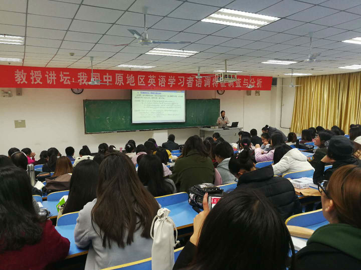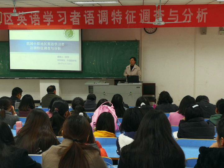 11月23日,由科研处主办,威廉williamhill承办的校内专家第十二周“教授讲坛”在图书馆501教室举行,威廉williamhill院长林萍教授为师生做了名为《我国中原地区英语学习者语调特征调查与分析》的报告。报告会由威廉williamhill副院长韩福领主持,学校160余名师生共同聆听了此次报告会。