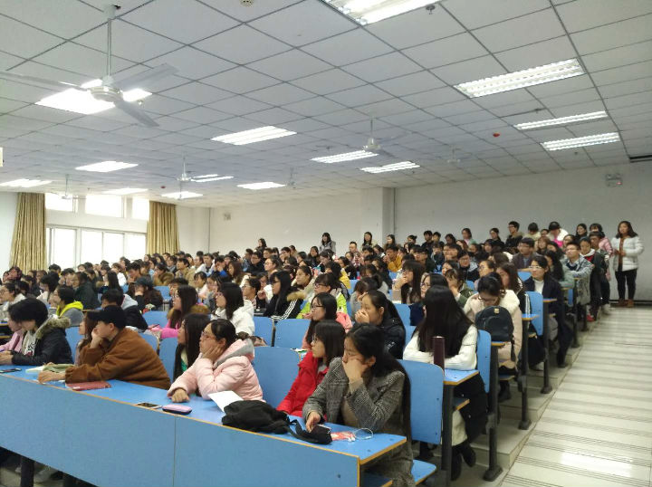都婧婧老师根据四六级口语陪考经验,结合自己多年来的教学实践,从四级考试备考准备、四级考试主要流程、四级考试应试技巧、四级考试注意事项等几个方面详细介绍了四级考试的主要内容。在讲座过程中,都婧婧老师还和参加讲座的学生进行了互动交流,气氛良好,收到了应有的效果。