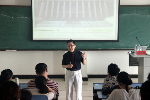 郭英剑教授分别从哈佛大学的校园美景、哈佛传说、书香哈佛、经典阅读、哈佛名师和哈佛学生等六个方面和师生分享了他在哈佛大学访学期间的所见、所闻、所感,以一张张真实生动的图片、简洁深刻的文字和风趣幽默的语言,给大家展示了哈佛大学的数百年历史和哈佛精神。讲座中,郭教授向师生重点推荐了哈佛大学的经典阅读书目。这些书目涵盖了历史、哲学、文学、数学、逻辑等多方面的通识教育书籍,并以“哈佛本科生论文怎么登上《自然》杂志?”为例子,让大家思考人文学科即通识教育的重要性,号召老师在进行语言教学的同时应多培养学生的人文素养,更呼吁全体学生要多读书,读好书,在读书中学会思考,在反思中认识世界。最后,郭教授以哈佛大学Deter Gate 的名言“Enter to grow in wisdom; Depart to serve better thy country and thy kind”(踏入校门,增长知识;迈出校门,报效国民)勉励全体学生要认真读书,好好学习,报效祖国。报告结束后,郭教授还同与会师生交流互动,解答师生提问。整场报告会气氛活跃,内容丰富,让在场师生受益匪浅。