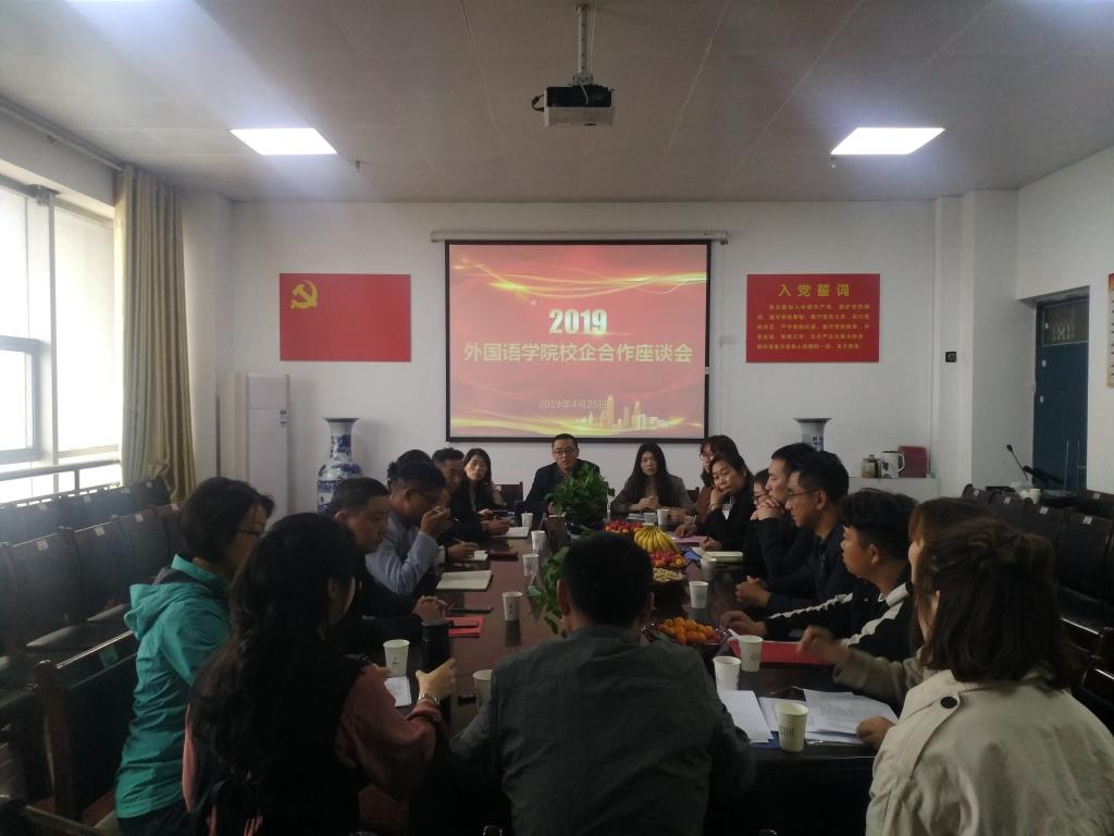 4月25日上午,威廉williamhill在L607会议室召开校企合作交流座谈会。来自平顶山剑桥外语学校、汝州外国语学校、许昌龙祁电子商务有限公司等30余家企业代表应邀出席座谈会,威廉williamhill院长林萍、党总支副书记田占范、副院长韩福领和相关教研室、学工办老师参加了此次座谈会。