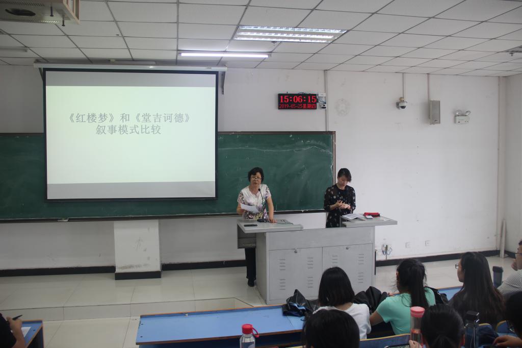 在讲座中,卢云教授首先介绍到两部著作的历史地位:塞万提斯写的《堂吉诃德》被誉为西方文学史上的第一部现代小说,这本书在西方国家的地位犹如中国的《红楼梦》。紧接着,通过作品内容的描述和精彩片段的剖析,让大家了解到两部著作叙事模式比较的缘由,进而展开叙事手法、叙事功能等方面的解析。最后,卢云教授也对两部著作叙事模式的比较所具有的现实意义和时代意义进行了总结。