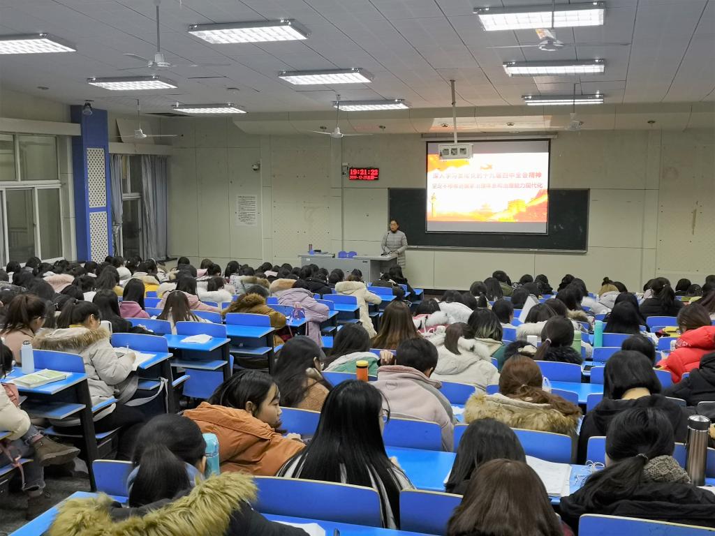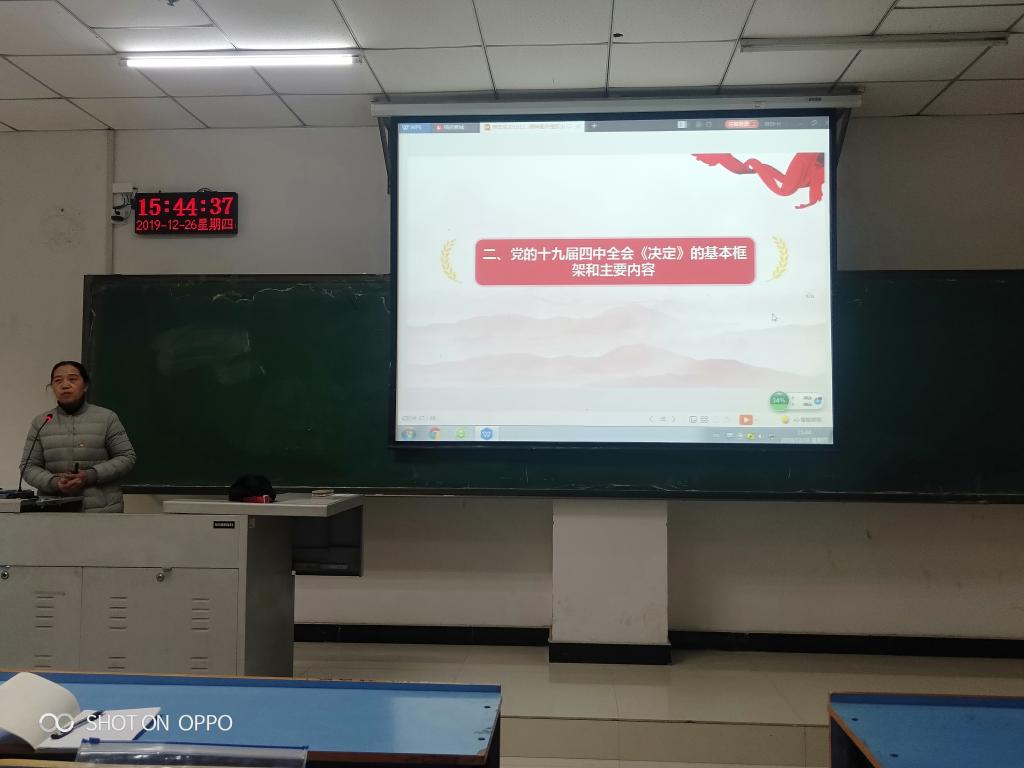 为推动全院广大师生深入学习宣传贯彻党的十九届四中全会精神,近期,我院举行了四场党的十九届四中全会精神宣讲活动。校宣讲团成员统战部部长曹子剑,威廉williamhill党总支书记单满菊对全院教师、学生进行了宣讲,实现了全覆盖。