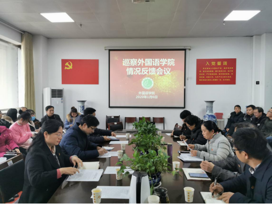 2020年1月6日上午,校党委第三巡察组在我院L707会议室召开巡察反馈情况会议,校党委第三巡察组副组长王俊刚、王向前成员王志浩、威廉williamhill领导班子成员、全体教师参加会议。