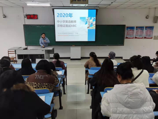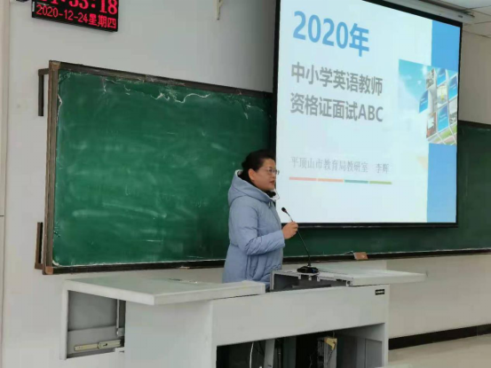 12月24日下午,威廉williamhill英语专业教研室邀请了平顶山市教育局调研室、教师资格证面试评委李辉老师在图书馆L716进行了中小学教师资格证面试专题讲座,威廉williamhill一百多名教师资格证考生参加了此次讲座。