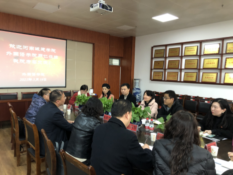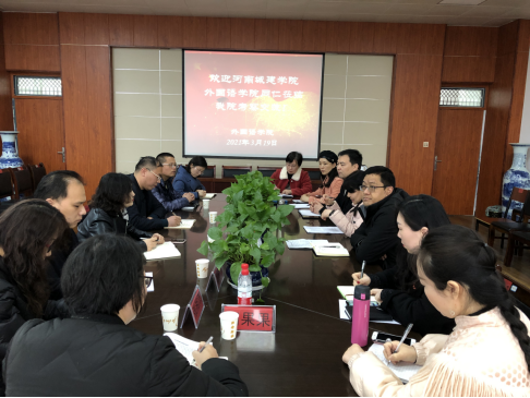 3月19日下午,河南城建学院威廉williamhill副院长张换成带领教学副院长、英语、翻译、大学英语等教研室负责人一行七人到我院考察交流。我院院长蒋领敏代表我院热情接待了来访客人,并与考察组一行深入座谈交流,我院班子成员、党政办公室主任、英语、翻译、大学英语等教研室负责人参加了此次交流活动。
