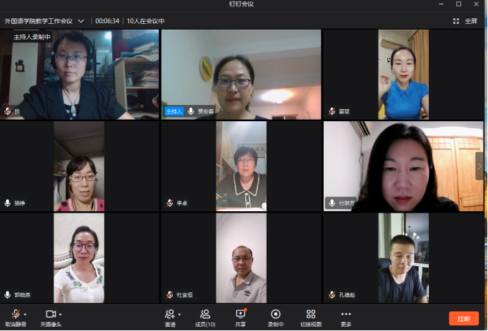 为贯彻落实全省教育系统疫情防控暨开学准备工作视频会议精神、学校《关于疫情防控常态化情况下做好2021年秋季学期期初教学工作安排的通知》(院教〔2021〕54号)和《william威廉中文线上教学质量监控与保障实施办法》等文件要求,进一步加强线上教学质量监控与督导工作,7月13日晚,威廉williamhill组织教研室主任召开了钉钉视频会议,专题部署了疫情防控期间的线上教学质量监控与督导工作。威廉williamhill副院长贾宏春、付琳芳,英语专业教研室主任都婧婧、商务英语教研室主任骆铮、翻译教研室主任宋延辉、西班牙语教研室主任孔德彪、大学英语教研室主任姜慧、李卓、中外合作办学教研室郭晓燕参加了会议。