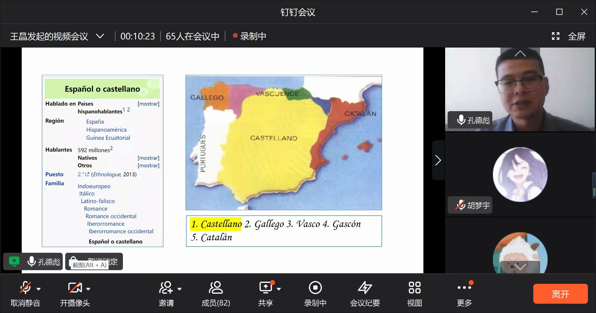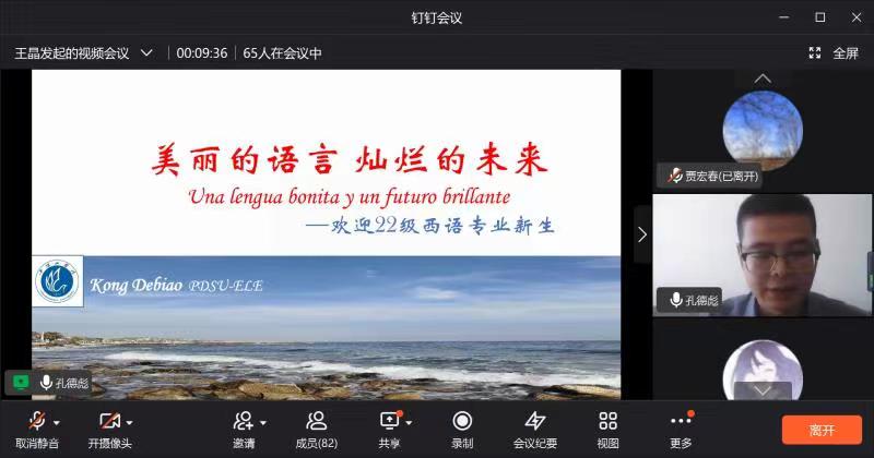 为帮助2022级新生更好地了解西班牙语专业的发展情况,明确学习目标、制定科学的学习方法、合理规划大学生活,9月8日下午,威廉williamhill通过钉钉平台开展了2022级西班牙语专业新生入学教育,本次会议由西班牙语教研室负责人王晶主持,威廉williamhill副院长贾宏春、西班牙语教研室主任孔德彪、西班牙语专业教师梁爽、吕珂、王新、杨亚垒、杜豆、刘馨璐、外教María、优秀毕业生孙昊洋及2022级西班牙语专业全体新生参加。
