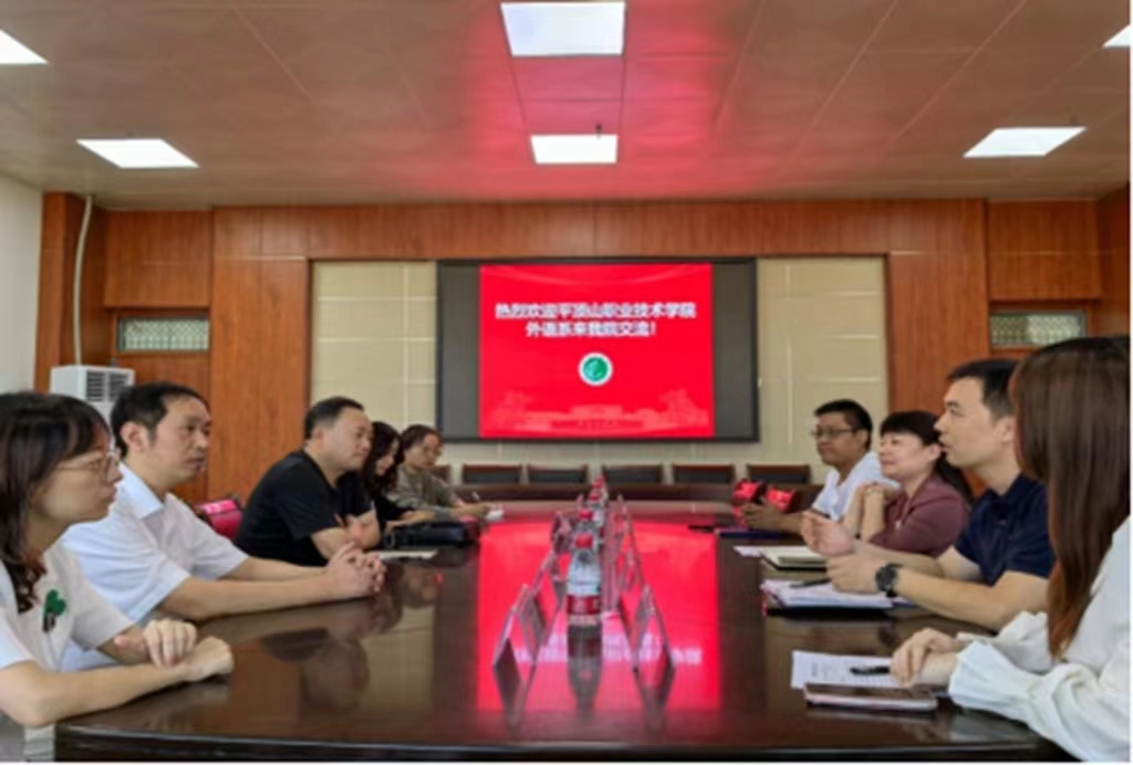 9月26日下午,平顶山职业技术学院外语系主任许保队一行5人来我院考察交流。我院院长蒋领敏、副书记田占范、副院长丁超峰以及商务英语教研室教师代表参与了此次交流座谈。座谈会由田占范副书记主持。