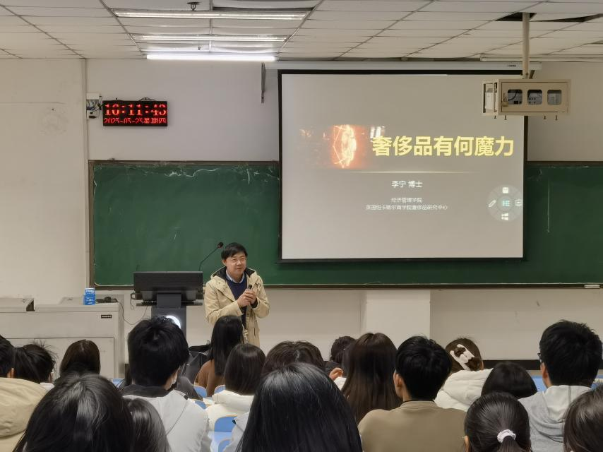 讲座围绕“奢侈品有何魔力”的主题展开,内容总体分为了“奢侈品行业发展历程、奢侈品的内涵及特征、奢侈品品牌的魔幻性以及奢侈品品牌的打造”四个方面的内容。李宁博士阐述了自己对奢侈品及其内涵、特征的独特见解,让同学们认识了奢侈品发展的历史渊源及主要受众群体。通过讲解奢侈品品牌的打造法则以及路易威登、香奈儿等奢侈品牌的故事背景让大家进一步了解到了奢侈品文化,对奢侈品有了更加清晰的认知。最后,在问答环节中,李宁博士与在座师生进行了进一步交流,为大家答疑解惑。