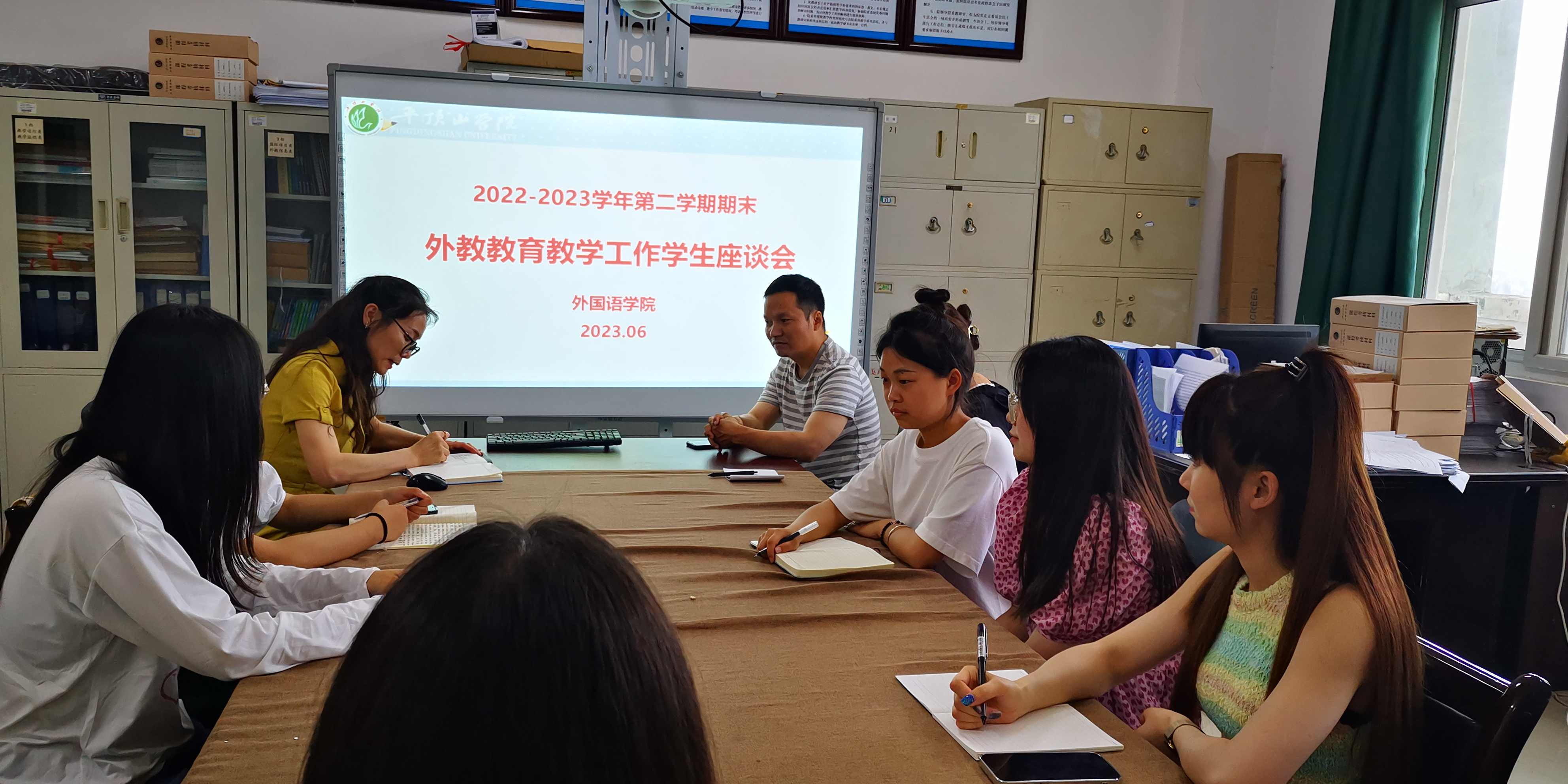 2023年6月8日下午2点,威廉williamhill在图书馆702会议室召开外籍教师教育教学工作学生座谈会。威廉williamhill副院长贾宏春、中外合作教研室主任郭晓燕、外教合作教师郭春园、王新以及来自威廉williamhill21级英语专业、21级翻译专业、21级商务英语专业、21级西语专业、21级电子中外专业和22级翻译专业共计11名学生代表参加了本次座谈会。会议由郭晓燕老师主持。