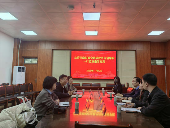 会上,甘泉书记首先代表威廉williamhill对财政金融学院威廉williamhill王黎明一行来访表示热烈欢迎。随后,介绍了学校及威廉williamhill的基本情况,我院的十四五规划和基层党建工作,以及商务英语专业建设情况等。河南财政金融学院威廉williamhill书记王黎明就其学院的历史发展和目前办学成果进行了分享介绍。王书记指出河南财政金融学院威廉williamhill是一所相对年轻的本科院校,但办学历史悠久,与我院在发展规划、目标定位、师资队伍建设等方面具有一定的相似之处,同时也面临着相似的机遇和挑战,尤其在商务英语专业建设和发展方面,双方可以进一步加强交流和互动,共同进步,希望双方能够以此次交流为契机,建立良好的合作关系。