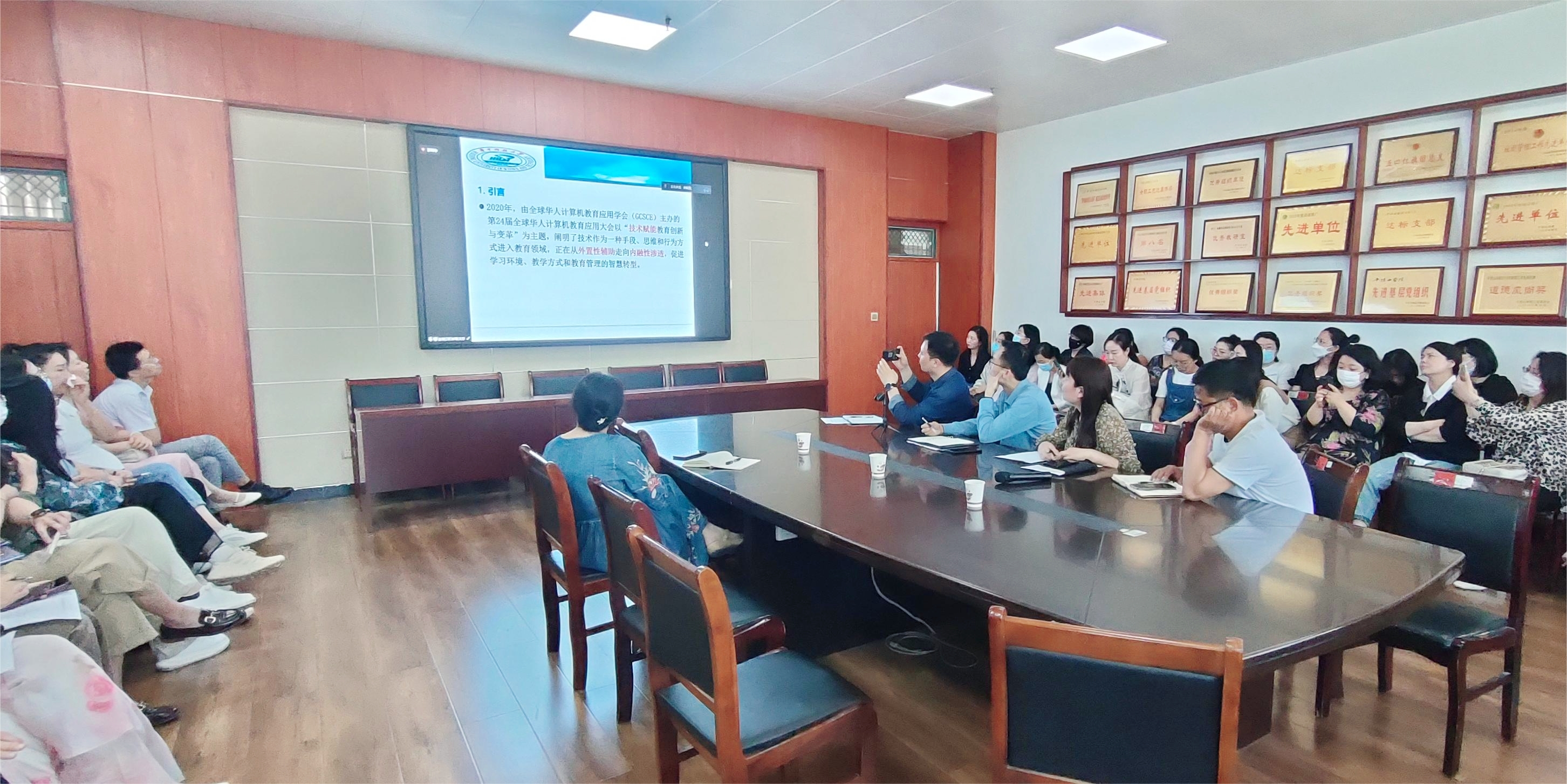 为了提高教师的教学科研水平,2024年5月9日下午,威廉williamhill邀请了华中科技大学徐锦芬教授为学院教师做题为“技术赋能时代外语教学创新研究”的精彩报告,就新时代大学外语教学与技术的融合以及伴随而来的外语教学研究新突破口,同大家深入交流。报告由我院蒋领敏院长主持,采取线上直播和线下参与相结合的方式进行,学院全体教职工参加报告。