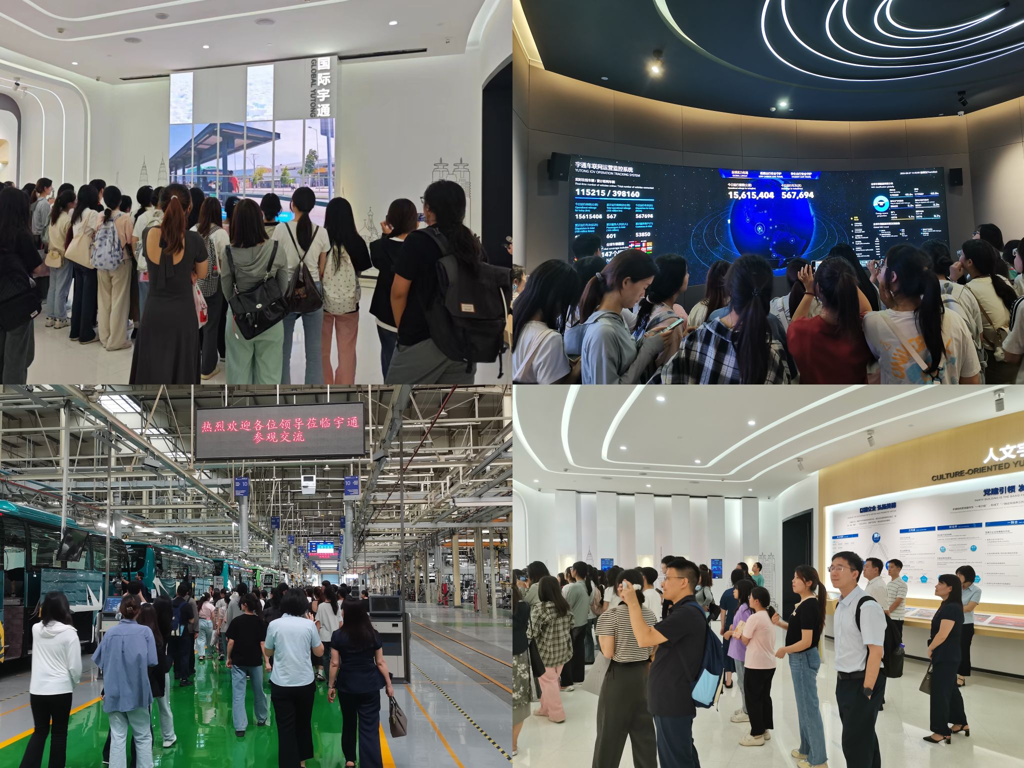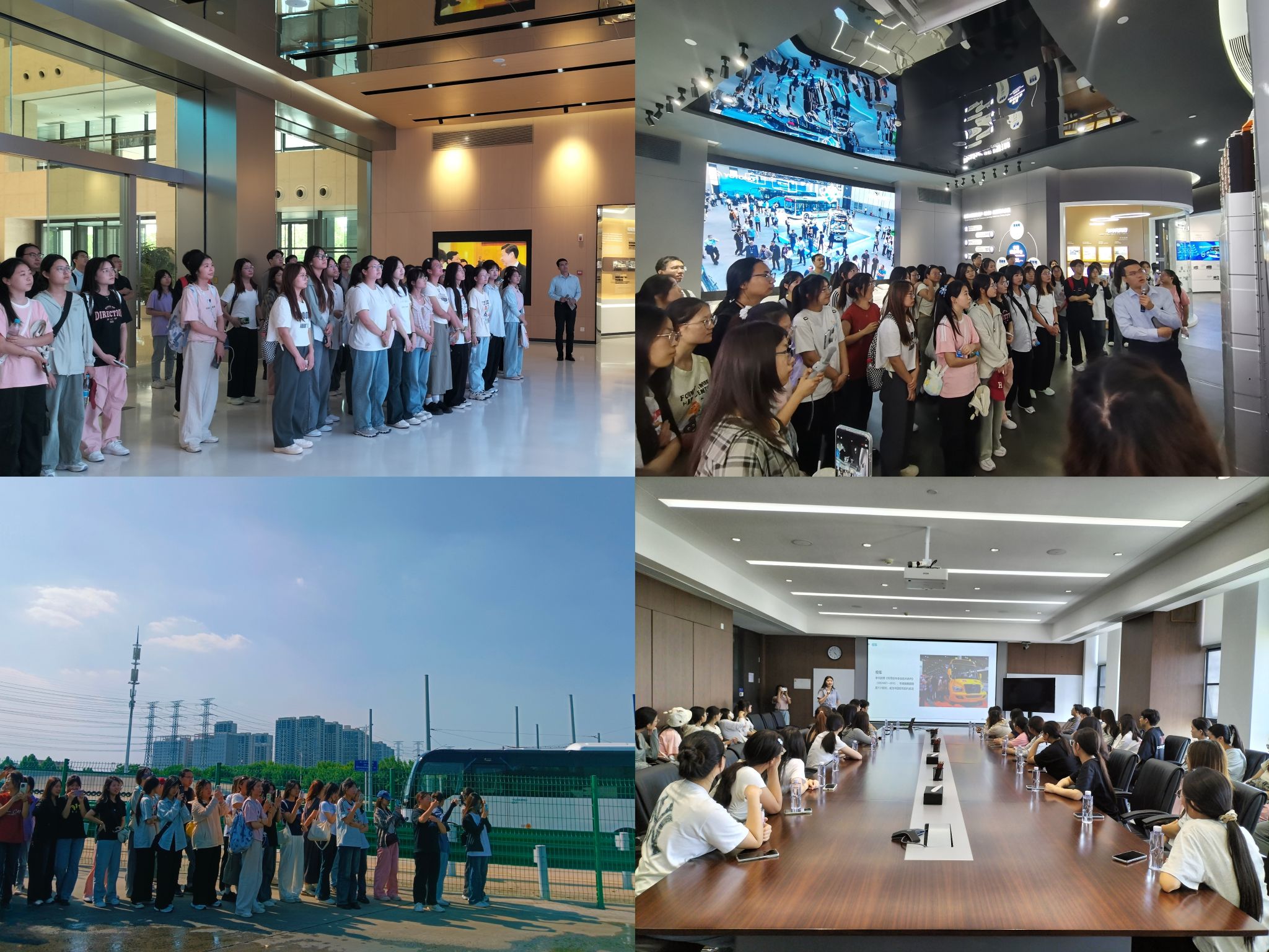 我院师生第二站抵达郑州宇通集团,在海外人力资源招聘经理张静等带领下,集体参观了宇通品牌体验中心、宇通客车展览馆、宇通车辆总装车间、新车测试场地,系统了解了宇通文化、公司的整体概况、发展历程。师生们近距离接触宇通客车先进的智能化技术以及生产车间的规范化流程,感受宇通公司的创新精神和技术水平。随后,我院学生集体前往会议中心,由海外人力招聘经理王静为大家详细介绍宇通集团在行业引领和技术创新等方面所取得的成就,阐述了宇通集团的企业文化与管理理念,并针对同学们的问题做了耐心的解答,对同学们的未来的职业规划和个人发展提出了有针对性的建议。最后,校企双方召开座谈会,不仅就宇通集团人才需求、新能源客车产业布局等进行了专题调研,还就外语人才培养、实践育人模式、就业实习实训等方面进行了深入讨论和交流。
