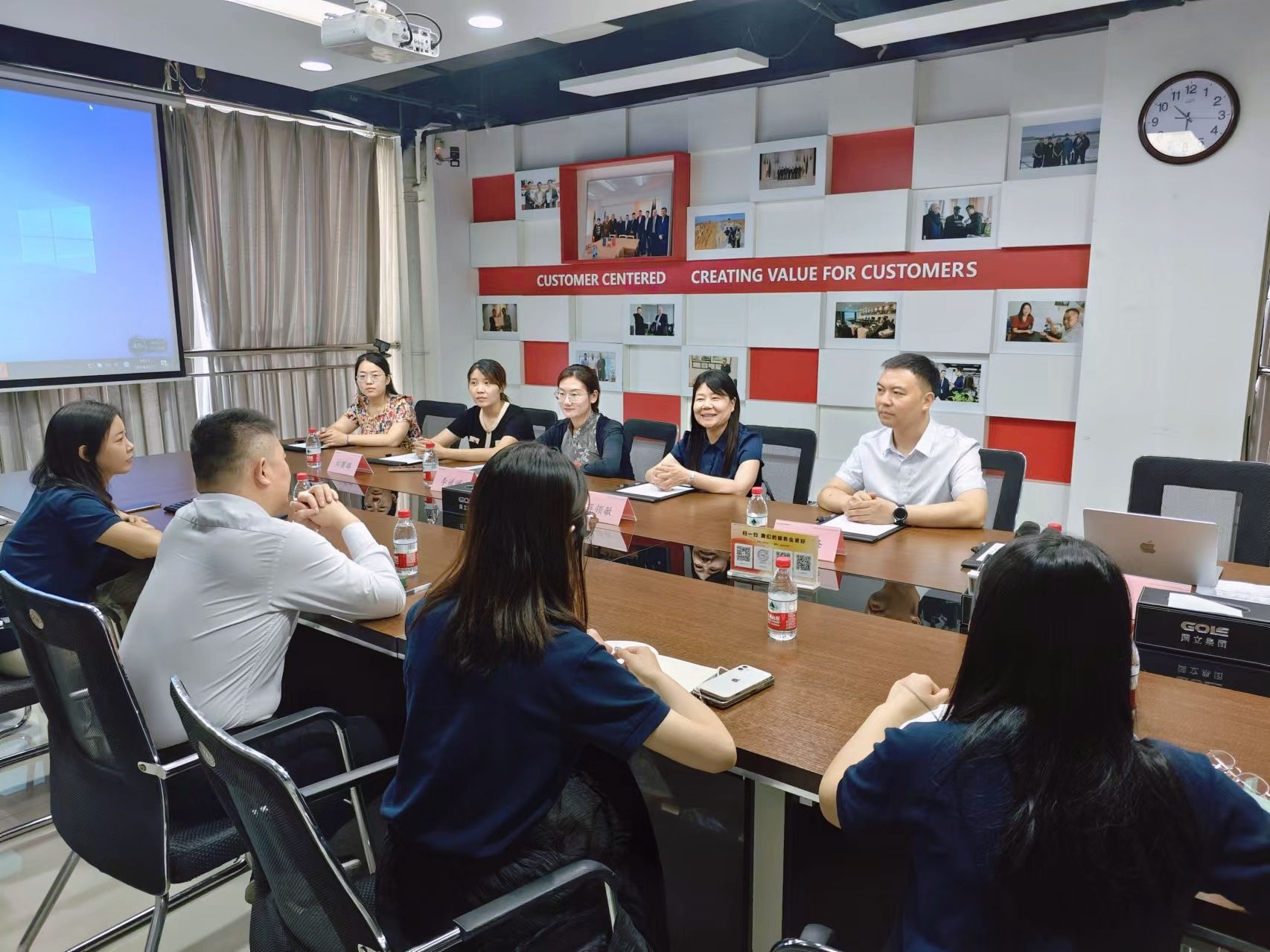 我院师生一行首站来到郑州国立集团,在招聘经理崔璨和组织发展部负责人李燕的带领下进行了参观,并于会议厅集体观看国立集团宣传片,师生们对公司的业务、发展历程与现状有了进一步了解。企业邀请毕业于我校的优秀员工孙欢可、刘广杰为同学们进行工作内容的相关介绍与经验分享,之后学长学姐又耐心细致的为同学们答疑解惑,加深了同学们对外贸行业和相关岗位的认识。随后,校企双方召开座谈会,国立集团安志强董事长对william威廉中文师生的到来表示欢迎,并详细介绍了公司的经营现状、未来战略规划以及当前的人才需求状况,蒋领敏院长详细介绍了我校商务英语专业和西班牙语专业的办学情况、专业特色和学生情况,双方还就如何进一步加强校企合作、实现人才培养与产业需求相匹配,共同培养高素质技术技能人才等方面进行了深入交流。