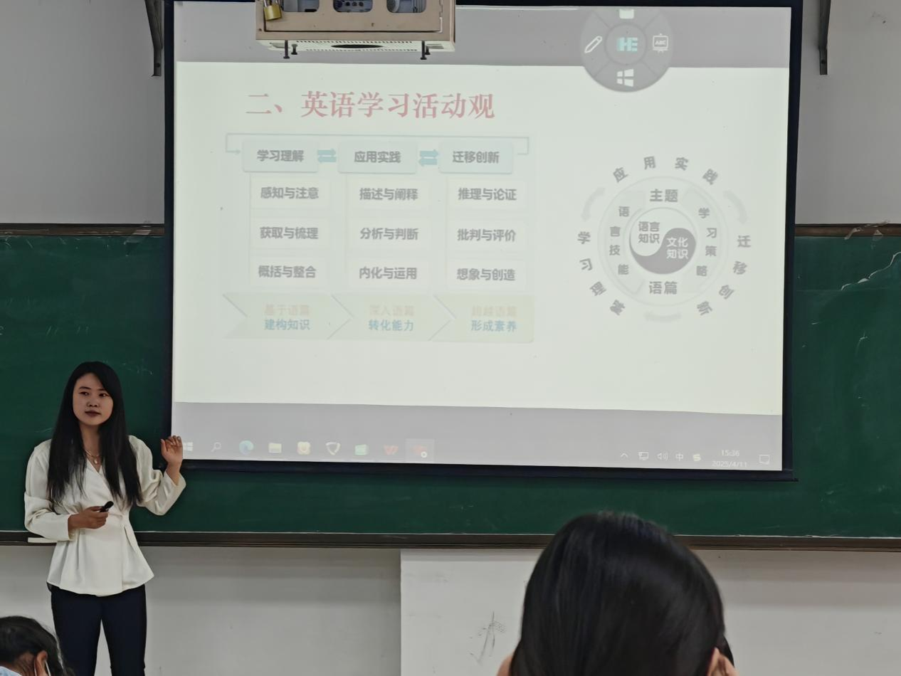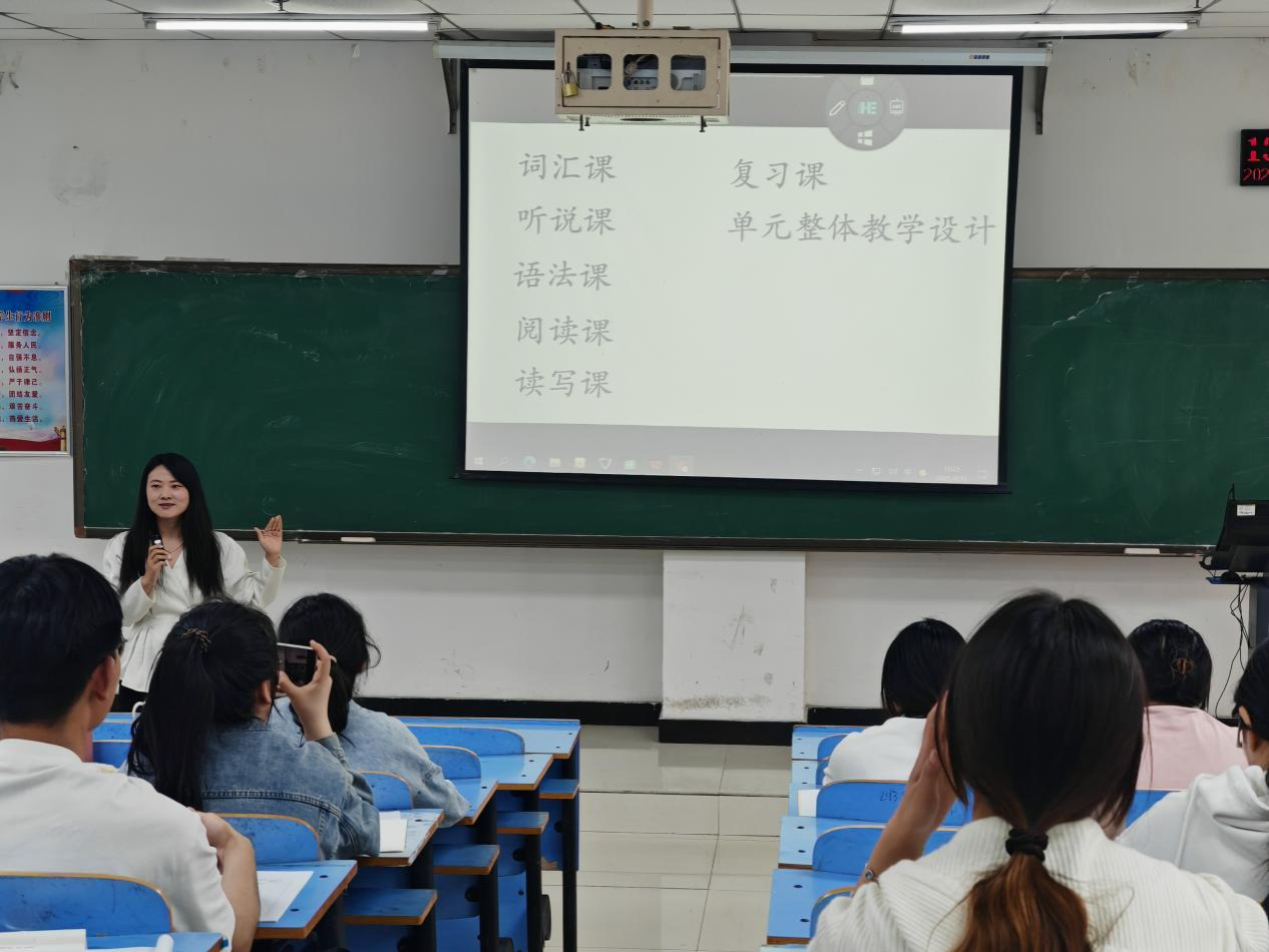 本次活动选择了仁爱八年级下册第六单元Section A作为主题,同时邀请了22级英语专业要深如、李斯南、余粤三名学生参与了本次同课异构活动。活动开始,三位同学进行了微型课展示。接下来,陈星星老师对三位同学的微型课进行了点评。随后,陈星星老师从招教角度,解析了初中英语优质课设计。她分别从课堂流程、课程分析、教学设计、资源分享四个方面进行了讲解,并和现场师生进行了热烈的交流。经过本次活动,现场师生一致表述收获满满,对于初中英语教学设计有了更为深刻的认识。