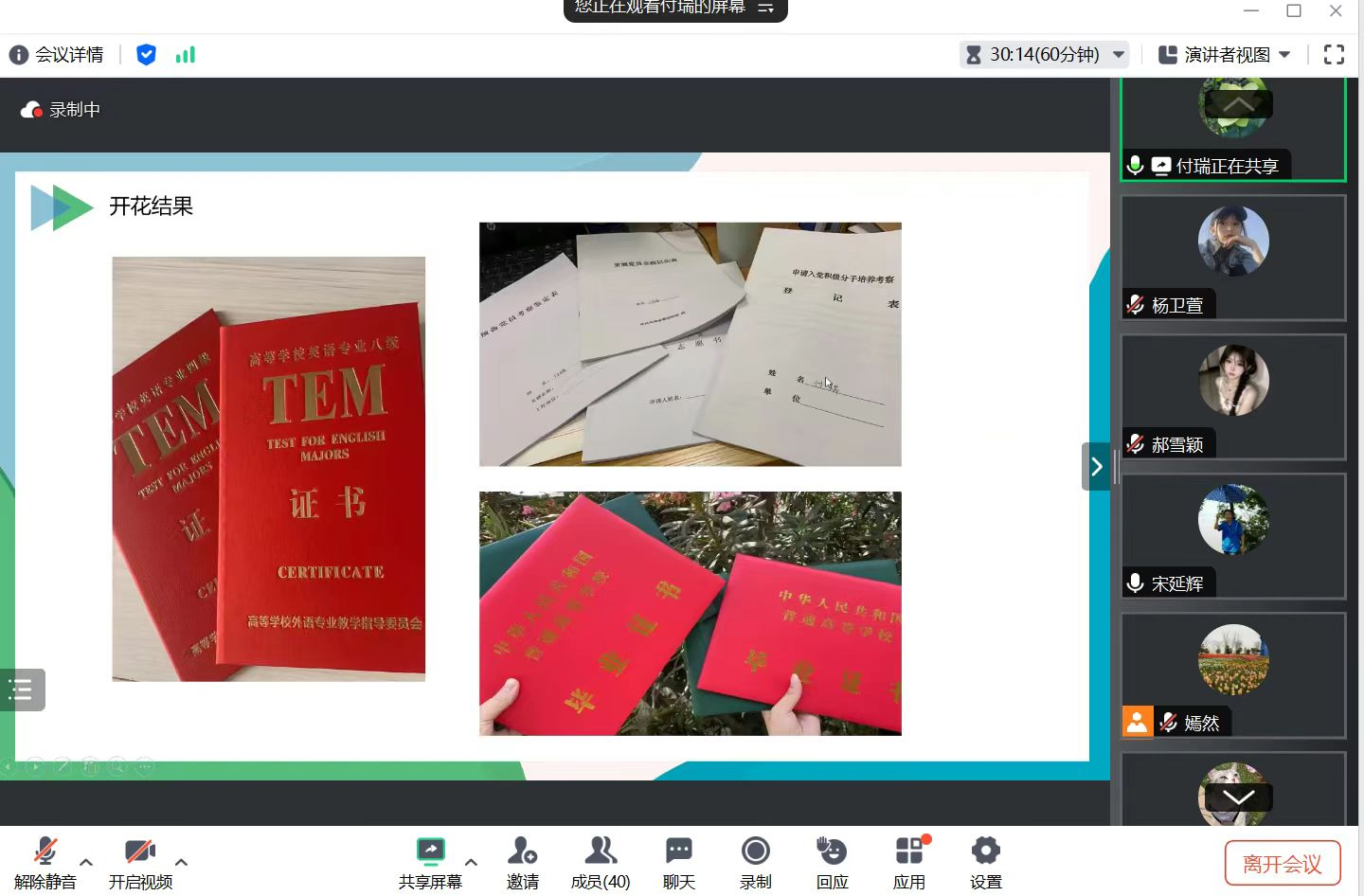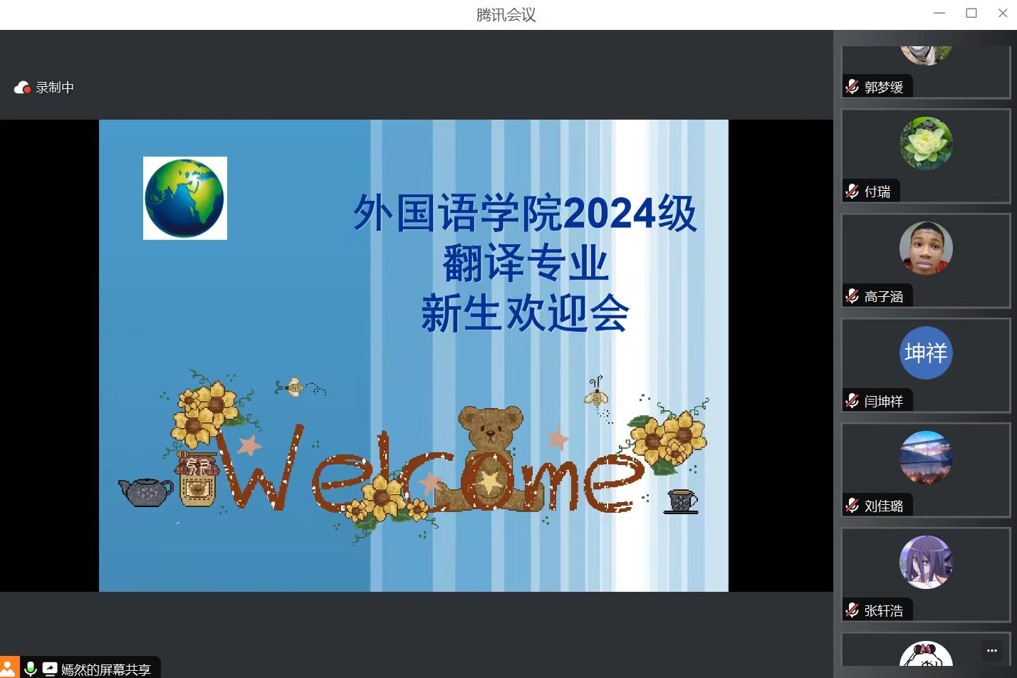 为帮助2024级新生提前做好学业规划及生活指导,快速适应大学生活,我院翻译专业于2024年9月3日开展了线上新生入学教育活动。本次活动由宋延辉老师主持,2024级翻译专业全体新生、在校生代表、优秀毕业生代表以及翻译教研室老师参加了此次活动。