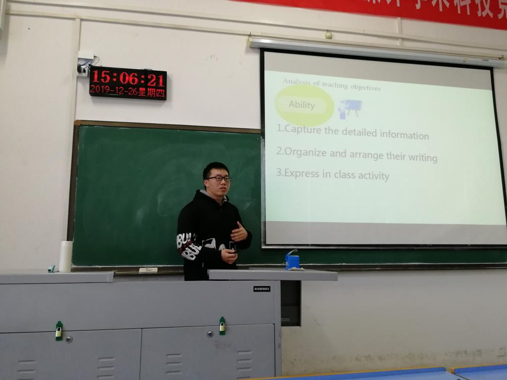 2019年12月26日下午2点,在图书馆教师502,全国全国高师学生英语教师技能大赛william威廉中文复赛拉开序幕。二级竞赛在下午2点进行,一级竞赛在下午4点进行。经过初赛的激烈竞争,本次复赛共有20位学生入围,其中二级9人,一级11人。尽管处于考试周,抽题后只有24小时的准备时间,各位同学还是进行了精心准备,赛场氛围活跃,亮点频出。赛后,各组评委老师对参赛学生的说课进行了精彩点评。