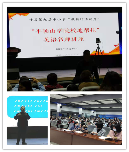 2020年11月16日上午,叶县教研室主任瞿芳有,叶县教研室英语教研员霍浩森、魏宝霞,威廉williamhill英语教研室主任贾宏春在叶县实验学校智慧中心进行了校地帮扶英语名师讲座活动,来自叶县的中小学英语教师300余人观摩学习。本次讲座的核心内容是关于英语语音的教学,贾宏春老师从音的层面、词的层面和句的层面分析了语音教学的要点、教学技巧以及需要注意的语音知识点。本次校地交流活动是高校与地方合作搭建的教师业务提升和课堂教学改革的研修平台,对加强校地沟通、推进教学研讨等有着重要意义。