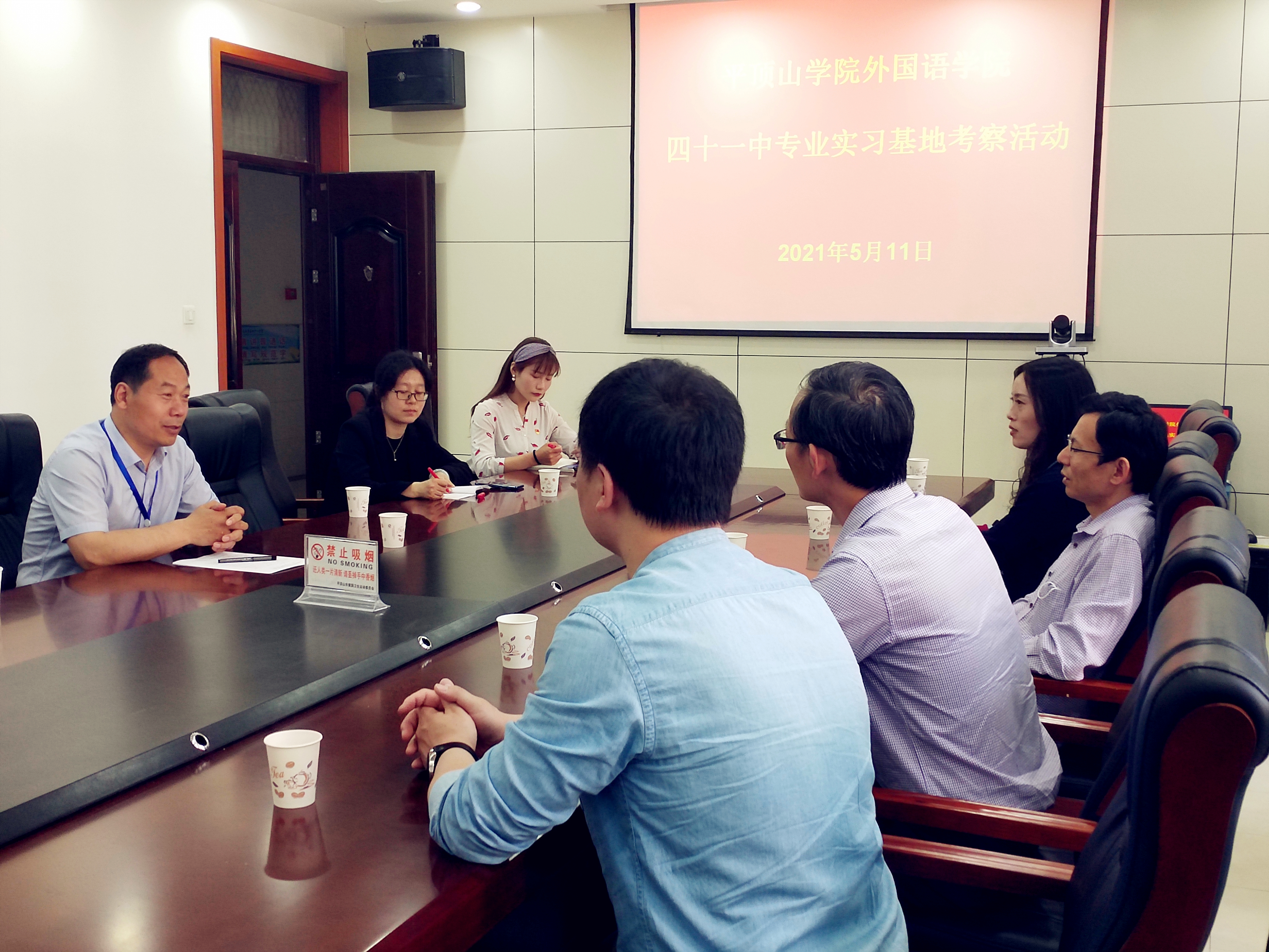 为深入推进产教融合、校校合作,切实提高我院英语专业应用型人才培养质量,加强校外实践教学管理,2021年5月11日,由教务处、威廉williamhill以及其他兄弟院系领导组成的调研团,到我院校外实践基地平顶山市第四十一中学进行走访调研。