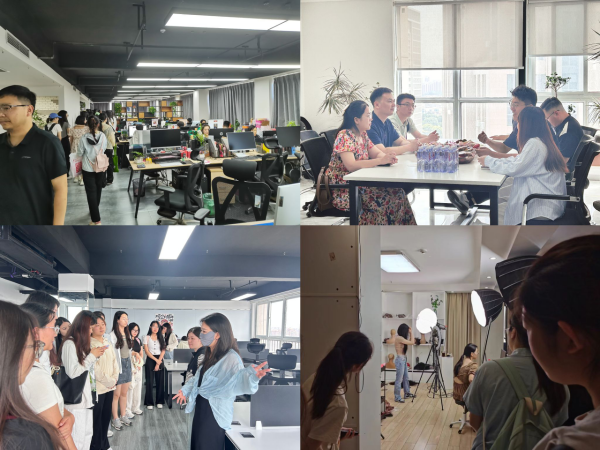 我院师生第三站来到许昌芮诗恩贸易有限公司,公司负责人刘涛、郑鹏飞等情接待了我院师生,并与我院师生进行了深入交流分享。首先,郑鹏飞带领师生来到公司各个门和多个直播间,在这里向同学们介绍了许昌跨境电商行业运营情况以及公司在国内外的优势资源,分享了公司在产品展示、多语直播服务、海外仓、海外宣传推广等全流程、全方位的成功案例。最后,校企双方举行座谈会,刘涛经理分享了自己在电商行业工作的经验和对未来的展望,我院师生围绕跨境电商专业知识、跨境电商直播技巧以及外语学习等问题,与企业负责人和供职于该公司的我校优秀校友进行了深入交流与现场互动。同学们表示在此次讲座中收获颇丰,不仅了解了行业趋势和岗位职责,还得到了许多宝贵的职业建议和指导。