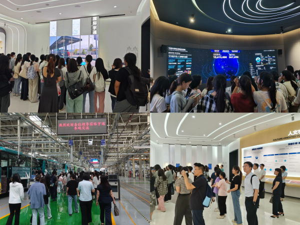 我院师生第二站抵达郑州宇通集团,在海外人力资源招聘经理张静等带领下,集体参观了宇通品牌体验中心、宇通客车展览馆、宇通车辆总装车间、新车测试场地,系统了解了宇通文化、公司的整体概况、发展历程。师生们近距离接触宇通客车先进的智能化技术以及生产车间的规范化流程,感受宇通公司的创新精神和技术水平。随后,我院学生集体前往会议中心,由海外人力招聘经理王静为大家详细介绍宇通集团在行业引领和技术创新等方面所取得的成就,阐述了宇通集团的企业文化与管理理念,并针对同学们的问题做了耐心的解答,对同学们的未来的职业规划和个人发展提出了有针对性的建议。最后,校企双方召开座谈会,不仅就宇通集团人才需求、新能源客车产业布局等进行了专题调研,还就外语人才培养、实践育人模式、就业实习实训等方面进行了深入讨论和交流。
