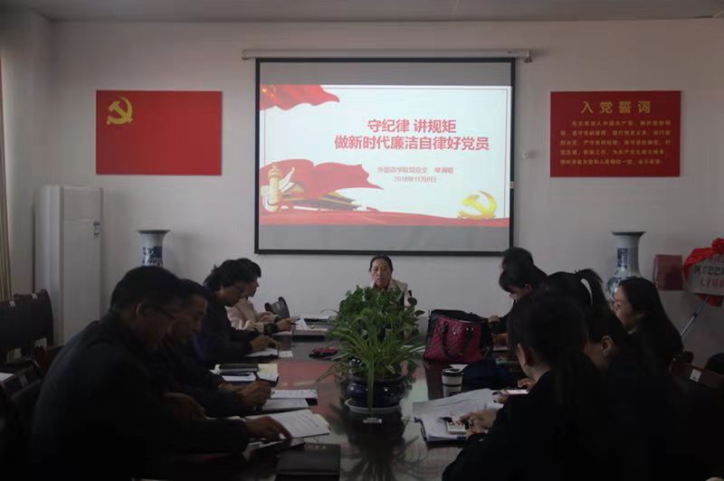 为深入贯彻落实校党委全面从严治党的部署要求,夯实基层党建工作政治责任,推动“两学一做”学习教育常态化制度化,教育党员干部牢固树立“四个意识”,坚持“两个自信”,保持廉洁自律。118日下午,威廉williamhill党总支在图书馆L607开展了“守纪律、讲规矩,做新时代廉洁自律好党员”主题党日活动。活动由威廉williamhill党总支书记单满菊主持,威廉williamhill全体党员参加了此次活动。