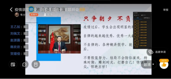 为深入学习贯彻落实习近平总书记关于疫情防控工作的重要指示精神和教育部关于疫情防控工作的总体部署,根据学校相关工作部署与要求,在3月1日以班级为单位,组织我院在读学生积极开展了丰富多彩的线上“疫情就是命令 防控就是责任”主题班会活动。