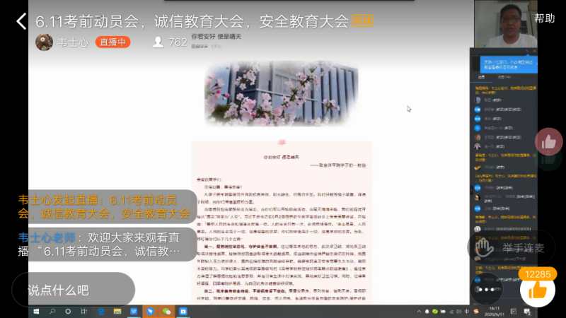 为贯彻落实疫情期间学校对于学生安全教育及管理工作方面的要求,6月11日下午,威廉williamhill通过钉钉网络直播平台召开了安全教育大会。威廉williamhill党总支副书记田占范、院长蒋领敏、团总支副书记韦士心及威廉williamhill全体在校生参加了此次会议,会议由韦士心老师主持。