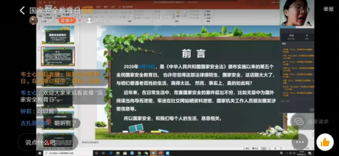 此次活动,学院组织同学们以居家线上观看的形式开展“4·15”全民居家参与“国家安全专题教育”,同学们积极响应,在家共同观看学习教育公开课,进一步了解了我国的总体安全体系、公共安全三角形基础理论和健全公共安全体系等内容,激发了同学们的爱国之情。其次,为加强同学们对国家安全相关知识的了解,各班组织同学积极参加国家安全知识问答活动,通过网上答题,同学们更加明确了国家安全相关问题,引导同学们树立“国家安全、人人有责”的责任意识。此外,各辅导员还充分利用与活动主题相关的现有在线教学资源,积极开展线上主题班会等活动,组织学生进行在线交流讨论、学习,同学们积极参与,紧紧围绕“坚持总体国家安全观,统筹传统安全和非传统安全,为决胜全面建成小康社会提供坚实保障”这一主题展开讨论,就国家安全、疫情形势进行分析学习,更表达了自己的美好祝愿。