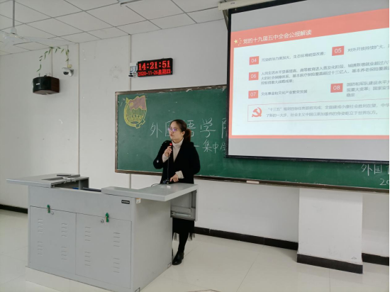 袁立文老师系统讲述了我国进入新发展阶段的重大意义、2035年远景目标,以及“十四五”时期我国发展的重点任务。同时袁老师强调,共青团作为党的助手和后备军是党的青年工作的重要力量,广大青年学生应深入思考全面建设社会主义现代化国家新征程中青年一代的历史责任,积极培养不畏艰险、勇挑重担、积极向上、奋发有为的精神风貌和为实现中华民族伟大复兴的中国梦而矢志奋斗的青年担当;努力学习专业知识,增强自身本领,为夺取全面建设社会主义现代化国家新胜利贡献青春力量,为祖国向更高目标发展贡献自己的青春力量。同学们认真聆听,并仔细记录。大家一致表示,作为参与祖国建设的青年学生,除了紧跟党的领导贯彻中央制定的改革道路外,还要将党的新思想深入到日常工作与学习中,为推动祖国的现代化建设贡献出自己的力量。