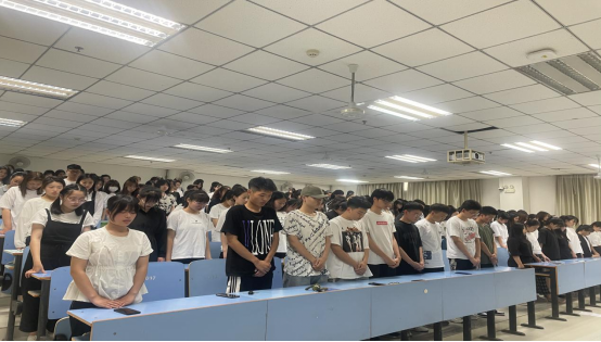 仪式伊始,陶岩睿老师发表讲话,他指出:“袁隆平院士一生致力于科学研究,为中国和世界的粮食安全做出了巨大的贡献,他就像陪伴着我们一起长大的老爷爷一样,对于他的去世我们每一个人都感到痛心”。表达了对袁隆平院士的敬意与不舍,也进一步激发了同学们对袁隆平院士的哀思。接着,主持人朱琳带领大家默哀三分钟,以悼念袁隆平院士,同学们整体肃立,表情凝重。默哀后,全体学生满怀悲痛的观看了电影《袁隆平》,通过这部电影同学们再一次回顾了袁老先生通过自己的双手立起的一座座丰碑。他是一位真正的耕耘者,他毕生的梦想,就是让所有人远离饥饿,这种爱岗敬业的精神和为祖国富强民族崛起而奋斗的精神,是每一位新时代大学生所应该传承和发扬的。仪式结束后,同学们纷纷表示要努力学习,要像袁老那样把为祖国、为人民工作作为自己毕生的奋斗目标。
