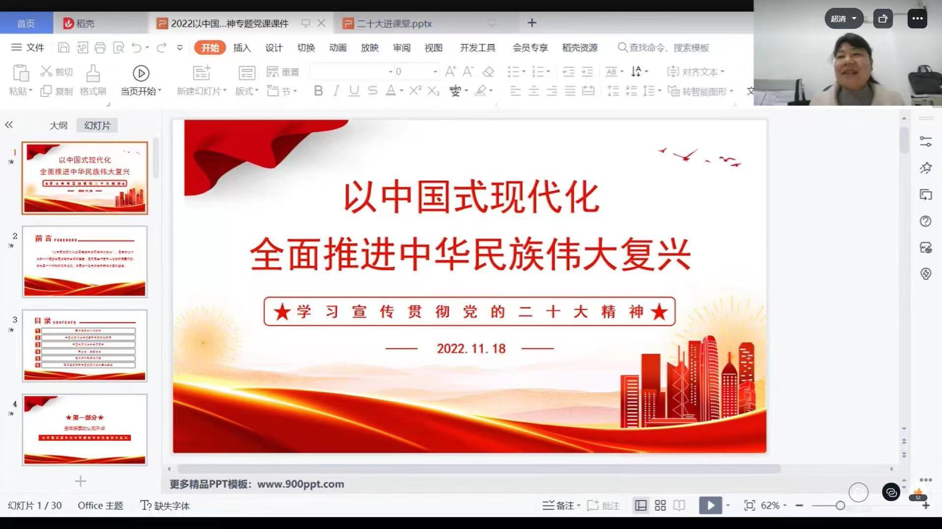 课上,蒋领敏以《以中国式现代化全面推进中华民族复兴》为题,带领同学们学习了党的二十大召开的时代背景、历史意义和主要成果,重点围绕“过去5年的工作和新时代10年的伟大变革”进行了讲授。接着,她讲到,学习中国式现代化的内容,要深刻理解中国式现代化的中国特色和本质要求,扎实自己的理论基础。随后,蒋领敏对全面建成现代化强国总的“两步走”战略安排进行了讲解,并在讲到全面建设社会主义现代化强国时,鼓励同学们担当进取,砥砺奋斗,争当中国式现代化新征程上的先锋力量。最后,蒋领敏强调,党的二十大精神内容十分丰富,既有政治上的高瞻远瞩和理论上的深邃思考,也有目标上的科学设定和工作上的战略部署,同学们要把学习贯彻党的二十大精神落实到学习生活中,努力成为有理想、敢担当、能吃苦、肯奋斗的新时代青年。