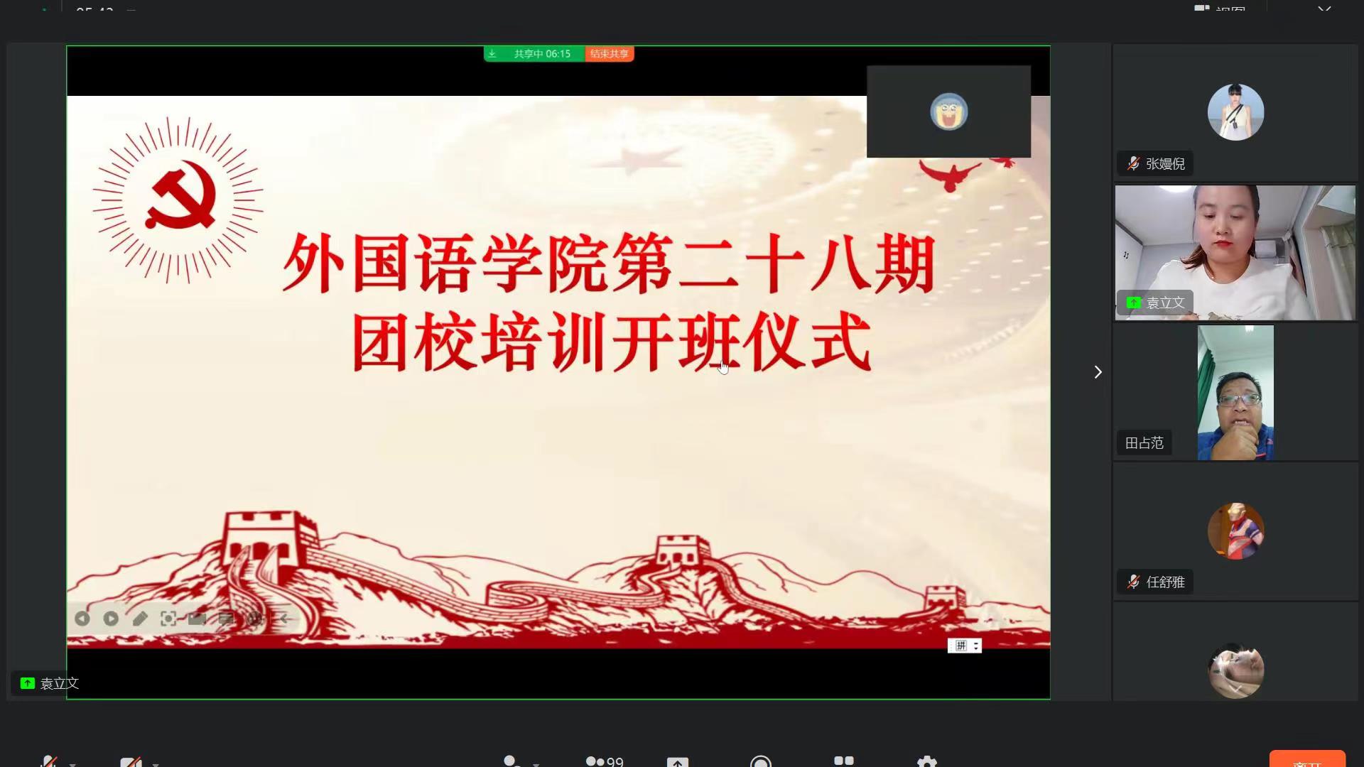 为进一步学习贯彻党的二十大精神,提升团员的思想政治理论素养,发挥优秀团员模范带头作用,11月10日至11月15日,威廉williamhill团委通过钉钉线上直播的方式举办了以“砥砺奋进守初心,青春献礼二十大”为主题的第二十八期团校暨青马工程培训。威廉williamhill党委副书记田占范、组织员韦士心,辅导员王梦瑶、石岩和培训班成员线上参加。本次培训开班仪式由威廉williamhill团委书记袁立文主持。