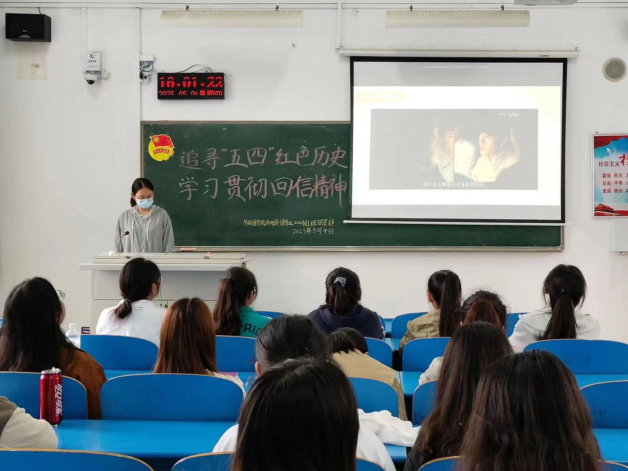 活动伊始,各班团支书带领同学们齐唱了中国共青团团歌,并以追寻“五四历史”为题,与同学们共同回顾了中国共青团的光辉历史和五四青年运动的伟大壮举,帮助同学们深入理解五四精神“爱国、进步、民主、科学”的核心内容以及忧国忧民、热爱祖国、积极创新、探索科学的精神内涵,进一步激发了同学们的爱国情怀。接着,各班团支书带领同学们共同研读了习近平总书记给中国农业大学科技小院的学生们的回信,探寻了将课堂学习和乡村实践紧密结合起来的方法,鼓励同学们为加快推进农业农村现代化、全面建设社会主义现代化国家贡献青春力量。随后,各班团支书带领同学们共同观看了《五四运动,神州觉醒》短片,使同学们进一步了解了“五四”红色历史,激励同学们始终铭记五四运动精神,不忘初心,砥砺前行。最后,同学们纷纷表示,自己将在未来的学习和工作中志存高远、脚踏实地,以实际行动挥洒青春热血,贡献智慧力量。