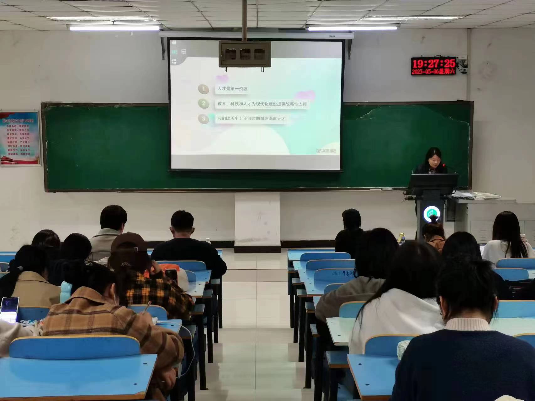 为进一步学习贯彻党的二十大精神,发挥党建领航作用,引导学生深刻理解教育强国、科技强国、人才强国的内在联系和重要意义,更好地助力学生就业启航,5月6日下午,威廉williamhill通过线上线下相结合的方式开展了以“聚天下英才,筑强国之基”为主题的形势政策课,本次课程由威廉williamhill院长蒋领敏主讲,2020级全体学生参加。