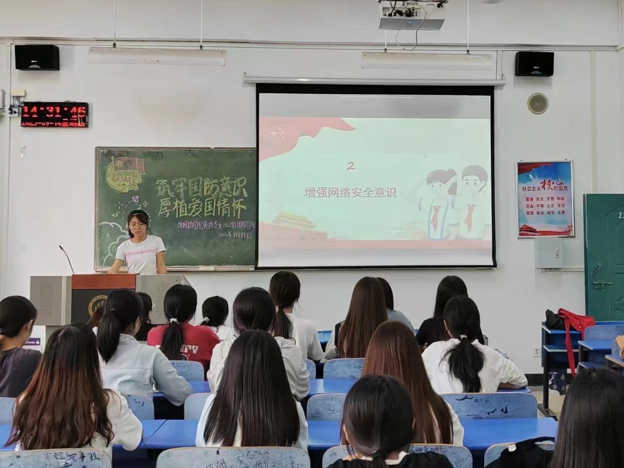 活动伊始,各支部团支书带领同学们齐唱了中国共产主义青年团团歌,与同学们共同观看了2023年度大学生网络素养能力提升大课堂,并向同学们讲解了相关的网络安全知识。接着,各支部团支书组织同学们开展了大学生网络安全知识答题活动,以答题的方式激励同学们以实际行动学习并宣传网络安全知识。最后,各支部团支书结合全民国防教育日特别节目《国防公开课》,向同学们解读了《中华人民共和国国防教育法》和《中华人民共和国国家安全法》,提醒同学们在日常生活中要擦亮自己的眼睛,谨防网络诈骗,如不幸受骗,要学会运用法律知识维护自己的合法权益。同学们积极参与并纷纷表示,在今后的学习与生活中,会将网络安全知识与实际生活相结合,并灵活应用于学习与日常生活中,努力为全面建设社会主义现代化国家不懈奋斗。