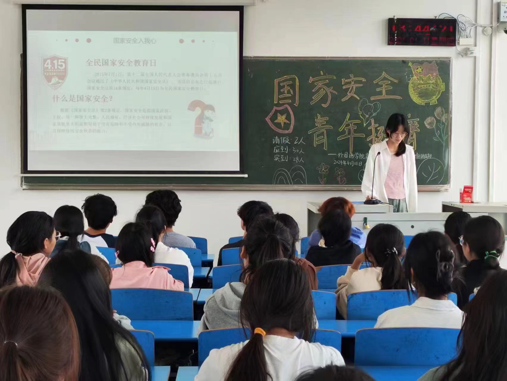 活动伊始,各支部团支书带领支部成员齐唱了中国共产主义青年团团歌,并共同学习了习近平总书记关于坚持总体国家安全观的重要论述,帮助支部成员进一步理解国家安全的重要性,筑牢心中的国家安全防线。接着,各支部团支书组织支部成员观看了有关国家安全教育的微视频《总体国家安全观》,详细阐述了国家总体安全观的具体内容,并分析了“维护科技安全需要你和我!”等国家安全教育警示案例,呼吁支部成员熟记国家安全知识,警惕身边可能出现的危害国家安全的行为,以实际行动为维护国家安全贡献自己的一份力量。最后,各支部团支书组织支部成员进行国家安全知识竞赛答题活动,支部成员踊跃参加,并纷纷表示作为新时代青年,在今后的学习与生活中会牢固树立总体国家安全观,增强忧患意识,坚决维护国家主权和安全。