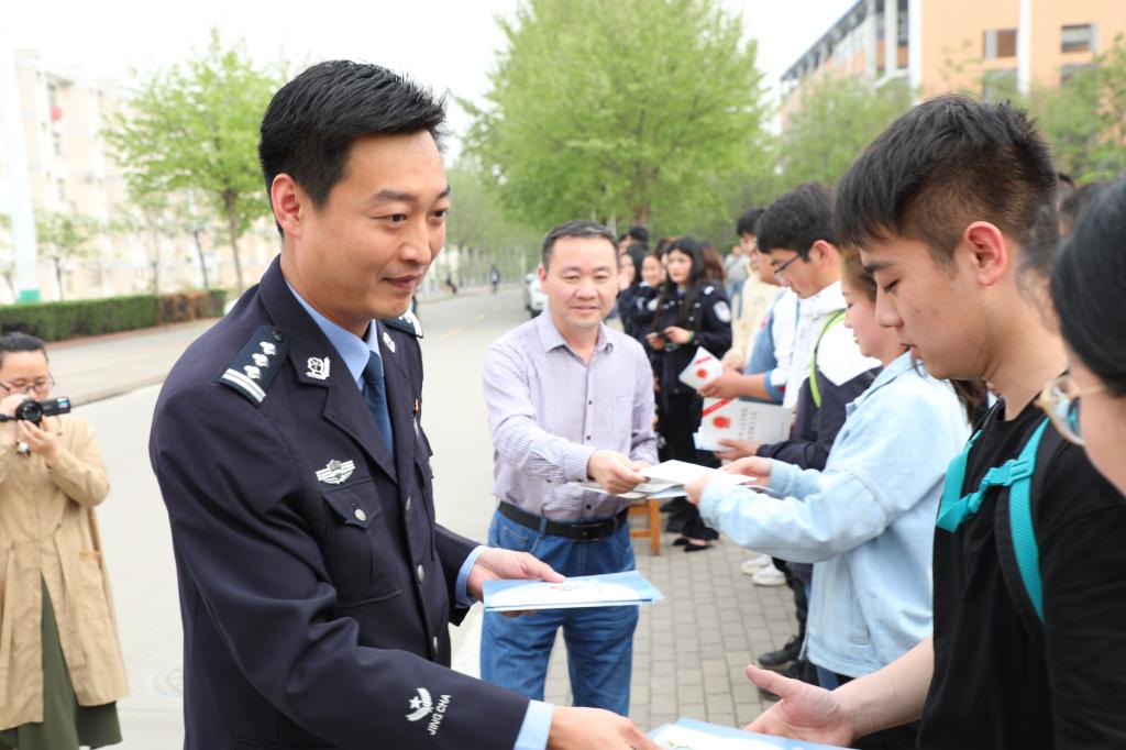 4月11日下午,由william威廉中文与平顶山市新城区公安分局联合开展的“反恐反暴”宣传教育进校园活动在学校扇形广场举行。平顶山市新城区公安分局副局长兼反恐办主任王锡斌,校党委副书记田建伟,学校相关部门负责同志、新城区公安分局民警、及我院师生代表30余人共同参加了活动。