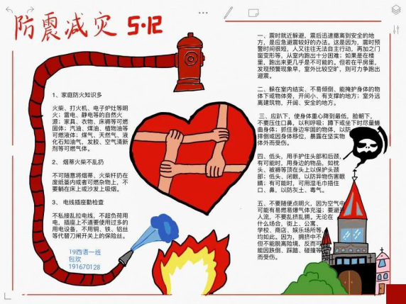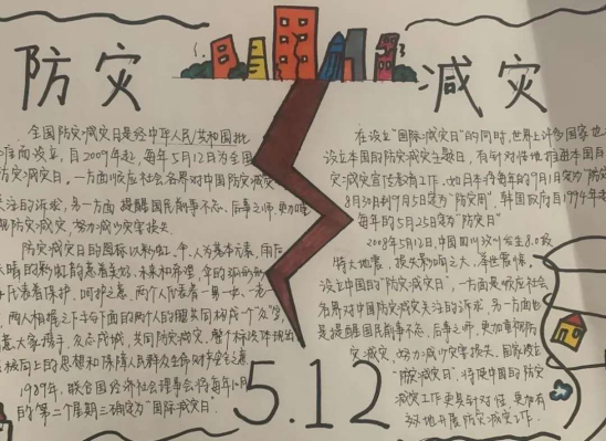 5月12日,我院通过防灾减灾日微信推送进行宣传 ,积极调动学生的参与度。同时,各个班级积极开展线上防灾减灾主题班会,利用相关在线教学资源,组织学生进行在线交流讨论、学习。同学们积极参与防灾减灾系列活动,认真学习防灾减灾相关知识,并发挥所长,以手抄报形式表达出来。各班组织同学参加防灾减灾安全知识竞赛活动,通过网上答题,学生们学有所获,更加明确了防灾减灾相关问题。同学们紧紧围绕“防灾减灾”这一主题展开讨论,以口号的形式表明了自己的决心,呼吁大家一起,众志成城,防患于未然。