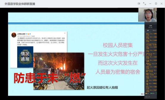 为扎实有效的开展防火安全教育工作,增强同学们的安全防范意识,全面普及校园防火安全常识,9月18日,威廉williamhill通过钉钉视频会议召开了防火安全教育会议。会议由韦士心老师主讲,威廉williamhill全体学生参加了此次会议。