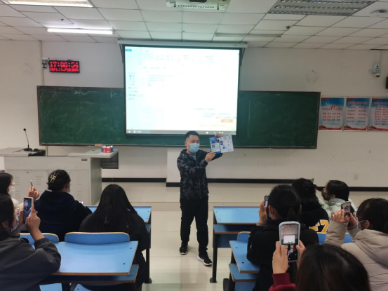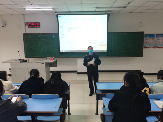 活动伊始,田占范讲道,随着互联网技术的迅猛发展,大学生受骗事件屡屡发生,反诈宣传不能松懈。他提醒同学们认识到本次反诈骗宣讲活动的重要性,认真学习相关知识,将本次宣讲内容传达到位。接着,市公安局工作人员向同学们说明了电信诈骗的惯用伎俩,如“校园贷骗局、伪造特定身份、网络刷单骗局”等,宣传了“不听、不信、不汇款、不转账”的四种基本防诈骗措施,最后指导同学们下载“国家反诈中心APP”,并细心地科普了“国家反诈中心APP”的来电预警功能、自动检测功能、风险查询等功能的操作流程。