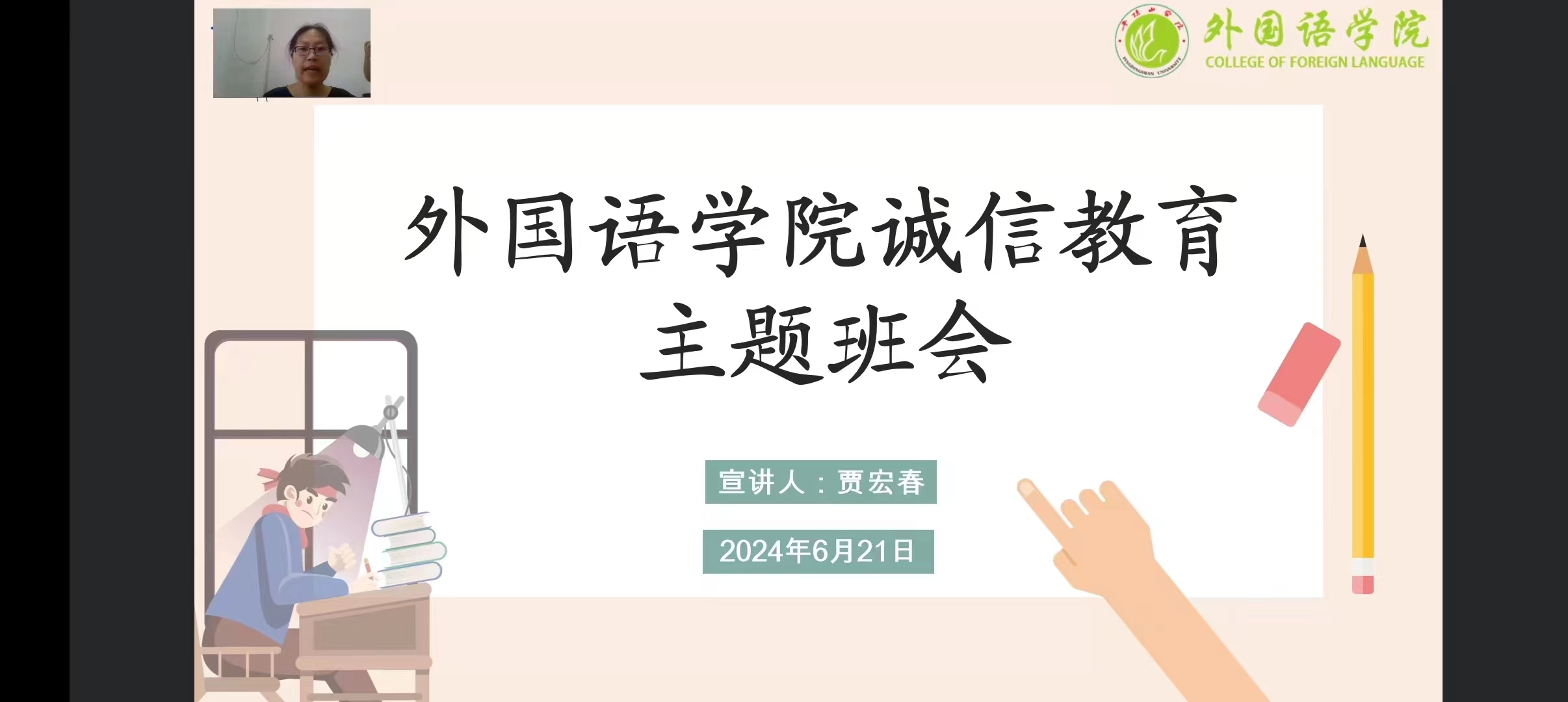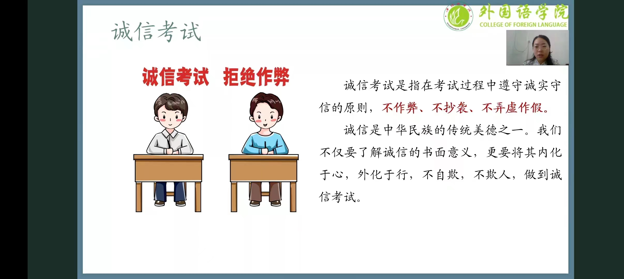 为加强同学们的诚信意识,引导同学们树立正确的考试观念,增强同学们的考前心理调适能力,6月21日上午,威廉williamhill通过钉钉线上直播的方式召开了诚信教育主题班会暨考前压力疏导会。本次会议由威廉williamhill副院长贾宏春、2022级辅导员王梦瑶主讲,威廉williamhill2021级、2022级、2023级全体同学参加。