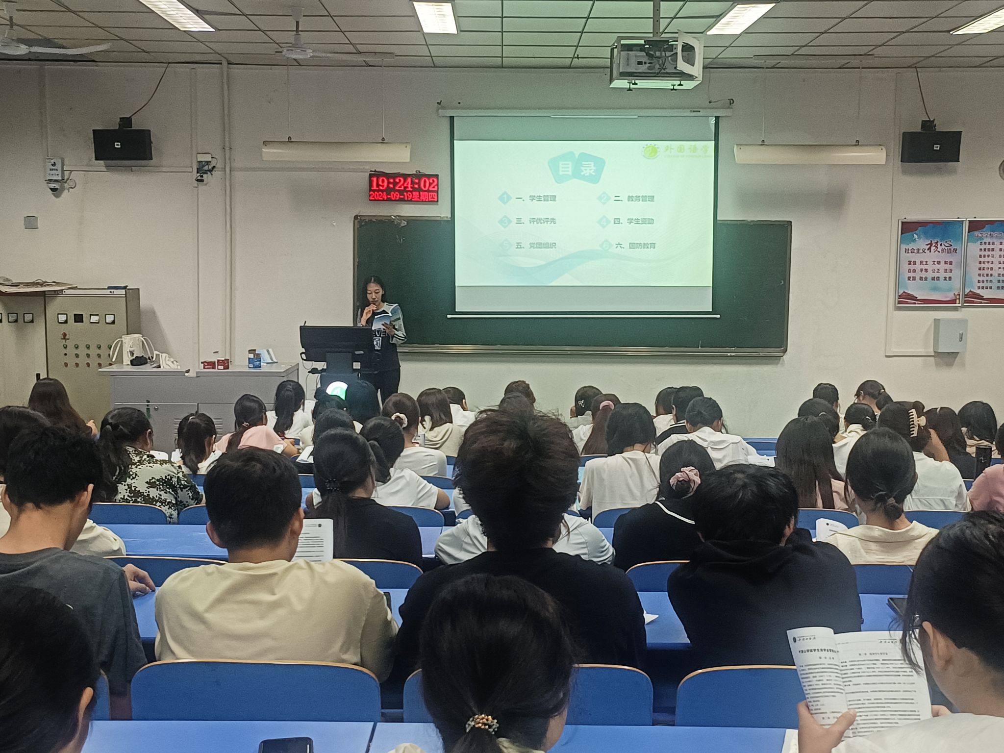 为进一步加强学生思想文明教育,提高个人素质,规范学生个人行为, 9月19日下午,威廉williamhill于1406、1407教室组织2024级新生学习了学生手册。本次学习由威廉williamhill2022级学生葛佳瑶、李佳音、王雨晴及2024级学生杨曦、李明静和李佳璐带领,2024级全体新生参加。